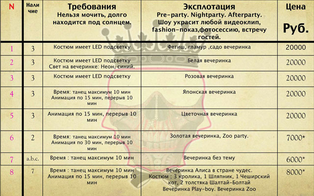 https://www.youtube.com/user/FBRothersShow Promo video http://youtu.be/9Gb74rJB9a0 - Dark King. S.O.K. - http://youtu.be/Sk2jzzqjAUw - White party S.O.K. - http://youtu.be/Zu6YCEWpnYQ - "PINK GLADIATORS" - http://youtu.be/oijDzxs_EFE - Japanese party S.O.K. - http://youtu.be/Vk8rbVC9nqI - Zoo party S.O.K. - http://youtu.be/NihT4gv2LY4 - Snake gold. S.O.K. - http://youtu.be/IjaM22JLqew - Freak S.O.K. - http://youtu.be/BWRNmu0qtqc - "Alice's Adventures in Wonderland" party S.O.K. - http://youtu.be/7a-QzHS1264 IMAGINARIUM show (воображариум шоу) https://www.youtube.com/watch?v=wtSFYAR2pFg - это общая концепция, а тема вечеринки может быть любой ( рок, цветы, футуристика, белая, бумажная, золотая вечеринка и т.д.) мин цена 70000р Связаться с артистом или заказать артиста на мероприятие Вы можете, заполнив форму