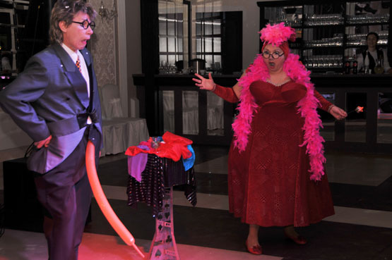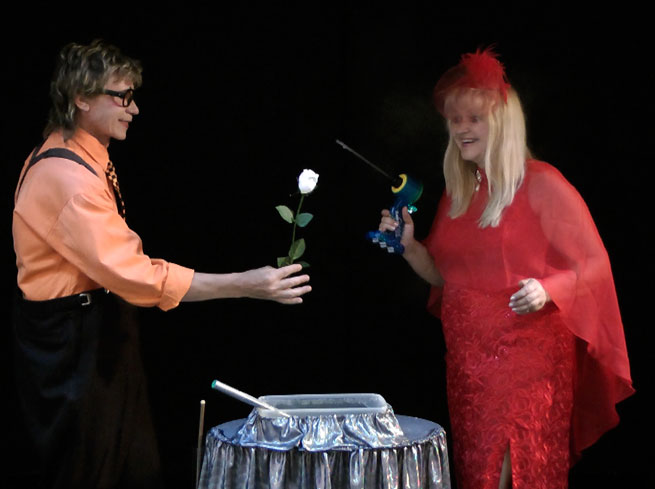 Синхробуффонада - «Виолончелист» и «Муха» - это комическая пантомима которая работается синхронно под те звуки, которые записаны на музыкальный носитель (диск, мини-диск) В результате зритель видит мультик на сцене. Особенно эти номера нравятся детям, но и взрослые не остаются равнодушными, и также смеются над весёлым Виолончелистом и его проказницей Крыской, или Мухой и Дамой, желающей съесть вкусный банан. В репертуаре также комические репризы: «Пародия на фокусы, новогодняя шутка, дрессировка и др… », а также есть 7 больших красочных надувных шаров ( от 1.5 до 2.5 метров в диаметре) для запуска в зал в финале шоу.