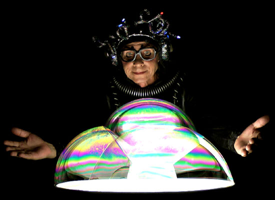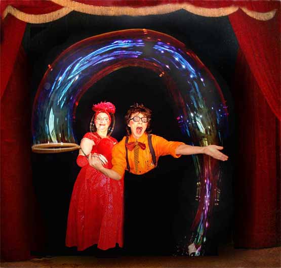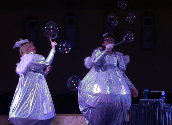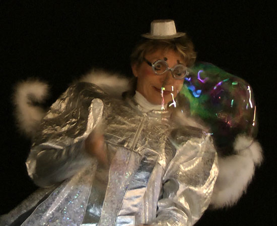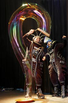 Это не просто пускание разных размеров мыльных пузырей вместе со зрителями. Нет, это выстроенный (срежиссированный и отрепетированный) комический номер, под определённую музыку (15-18 минут без интерактива), с актерскими обыгровками трюков и в синтезе с такими жанрами как иллюзия и пантомима. Комическое шоу мыльных пузырей очень нравится взрослым на юбилеях, свадьбах и корпоративах тем, что можно просто насладиться комическим и в то же время очень красивым номером со светящимся столом в котором раскрываются некие фокусные возможности мыльного пузыря в сочетании с иллюзионными трюками, а так же огромными мыльными трубами от 3 до 5 метров длиной. Романтическое шоу мыльных пузырей в костюмах весёлых ангелов, пользуется успехом не только на свадьбах, но и на дне рождении малыша. Шоу мыльных пузырей (космическое) в исполнении двух марсиан в оригинальных костюмах со светящимися лампочками не оставляет равнодушным ни одного ребёнка, т ем более что в конце шоу (дополнительная опция по желанию заказчика) предлагается каждому из детей и даже взрослым примерить мыльный марсианский скафандр. На выбор заказчика помимо космических и ангельских костюмов есть еще варианты костюмов – комические, классические и клоунские.